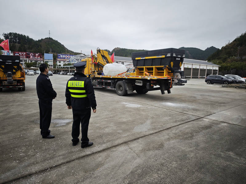 预警即命令,备战前置筑根基。1月19日下午,收到精准气象预报后,六大队第一时间进入临战状态,联合高速交管四大队组建联合检查组,直奔辖区养护站,重点核查融雪剂、防滑沙等应急物资储备量、除冰设备性能及应急人员值守情况。此次检查覆盖3处物资储备点,执法人员现场督促经营单位确保所有除冰设备处于热备状态,全面实现“人到位、物充足、机待命”,为夜间凝冻应对工作筑牢坚实的物资与机械保障防线。