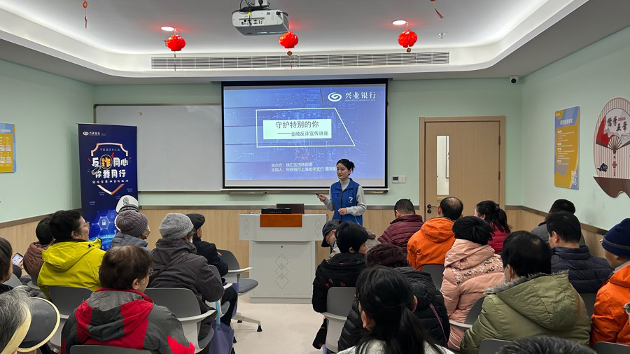近日宝钜证券,兴业银行上海龙华支行的“蓝马甲”志愿者服务队走进徐汇区田林街道“阳光家园”,为这里的居民们带来了一堂别开生面、充满温度的金融反诈知识讲座。